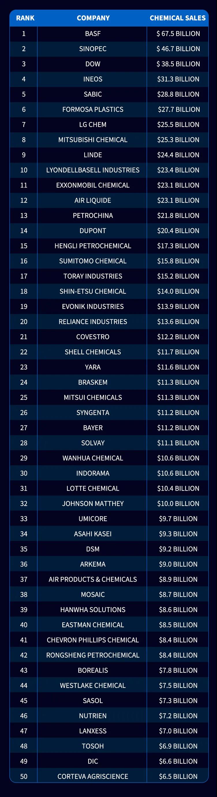 According to the 2020 sales statistics, Wanhua chemical entered the list with $10.6 billion, ranking the 29th place.