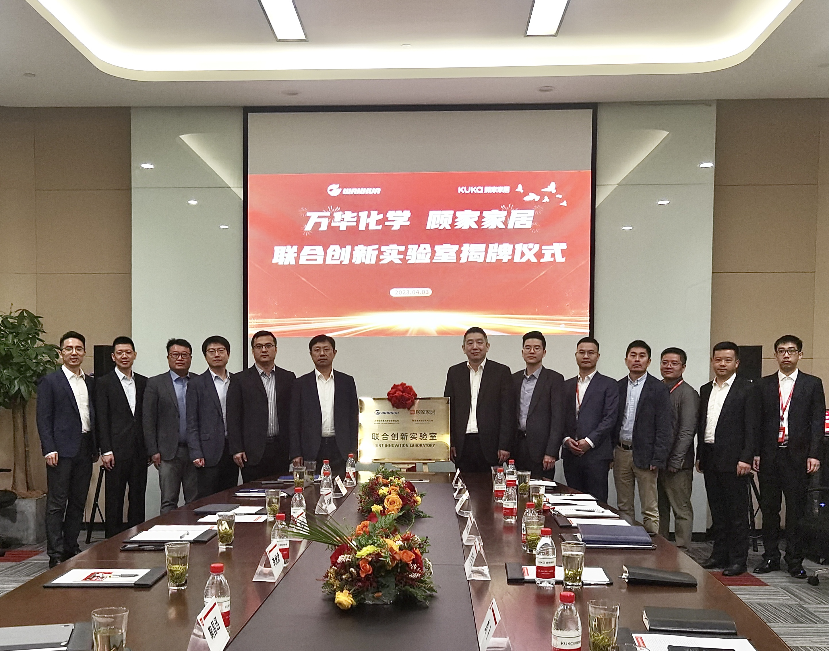 On April 3rd, Wanhua Chemical Group Co., Ltd. and KUKA Home Furnishing Co., Ltd. jointly established the Innovation Laboratory in Hangzhou. On the same day, Wanhua Chemical was invited to attend KUKA Home's 2022 Supplier Conference and won the Strategic Cooperation Supplier Award.